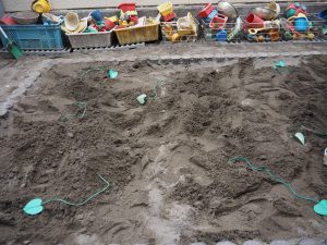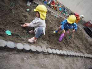 2歳児さんが園庭のお砂場でおいもほりごっこをしました。
