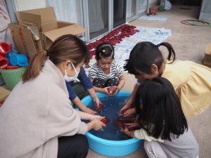 毛利保育園の園庭にて、「やきいも会」を行います。