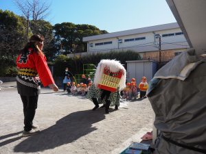 園庭にししまいが来ました。今年も毛利保育園の子どもたちは健康で元気に過ごせますね。